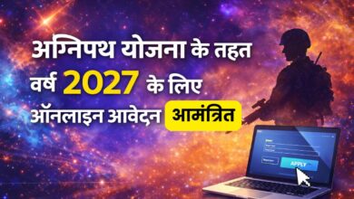 Agniveer Recruitment: अग्निपथ योजना के तहत वर्ष 2027 के लिए अग्निवीरों की भर्ती हेतु ऑनलाइन आवेदन आमंत्रित किए गए हैं।…
