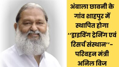 Anil Vij: अंबाला छावनी के गांव शाहपुर में स्थापित होगा ‘‘ड्राइविंग ट्रेनिंग एवं रिसर्च संस्थान’’-परिवहन मंत्री अनिल विज गांव शाहपुर…