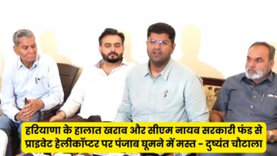 Haryana News: हरियाणा के हालात खराब और सीएम नायब सरकारी फंड से प्राइवेट हेलीकॉप्टर पर पंजाब घूमने में मस्त – दुष्यंत चौटाला