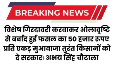 Inld News: सरकार तुरंत प्रभाव से किसानों का कर्जा माफ करे ताकि किसान आर्थिक हानि से उभर सकें: चौ. अभय…