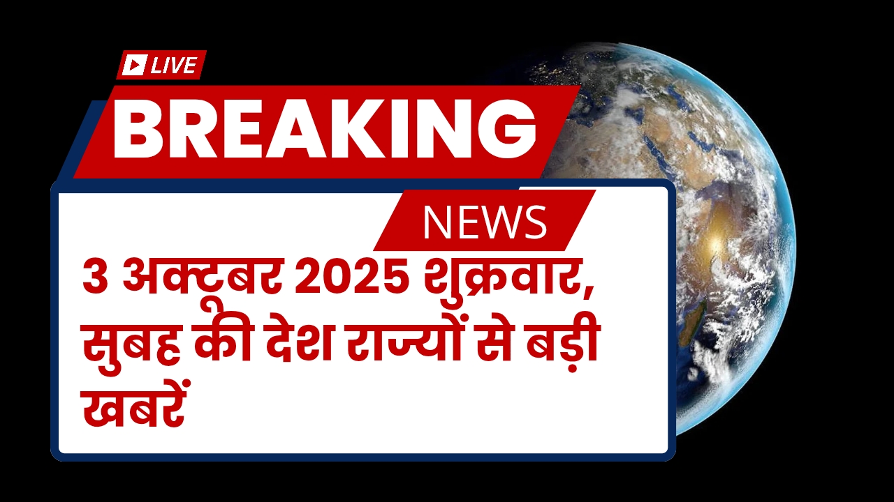 3 October 2025 ki Top Headlines: 3 अक्टूबर 2025 शुक्रवार, सुबह की देश राज्यों से बड़ी खबरें