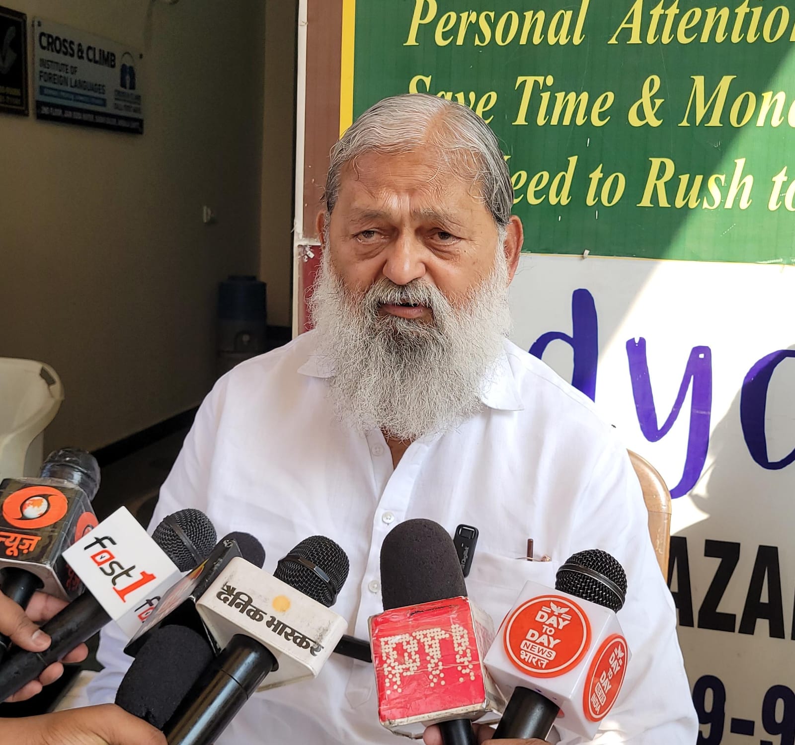 श्री विज आज मीडिया कर्मियों के सवालों के जवाब दे रहे थे।