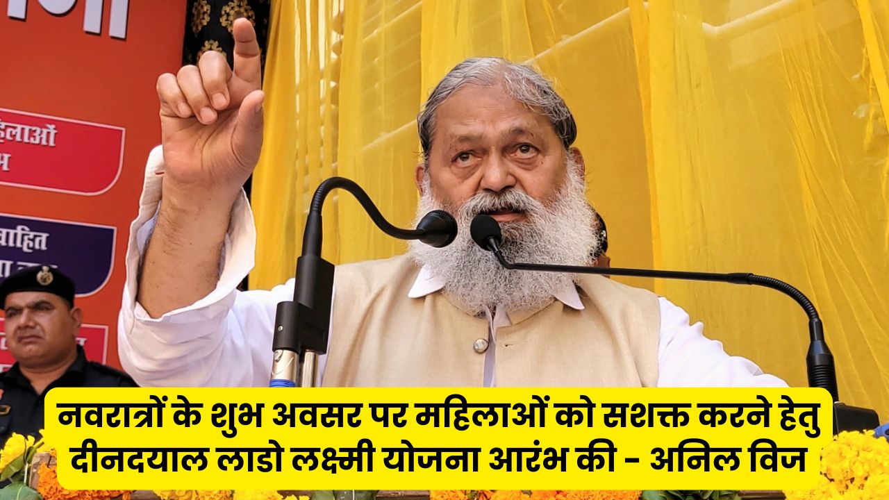 Anil Vij: नवरात्रों के शुभ अवसर पर महिलाओं को सशक्त करने हेतु दीनदयाल लाडो लक्ष्मी योजना आरंभ की – अनिल विज