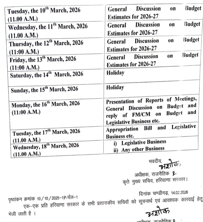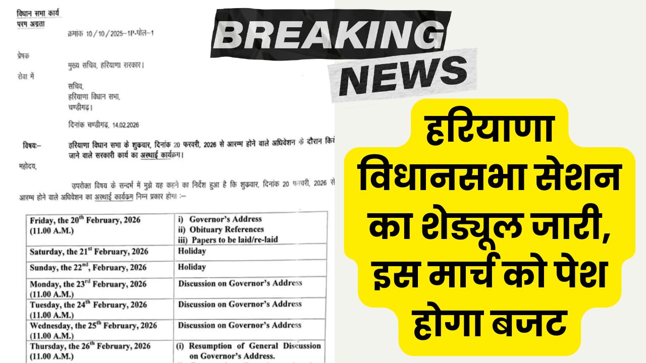 Haryana Budget: हरियाणा विधानसभा सेशन का शेड्यूल जारी, इस मार्च को पेश होगा बजट