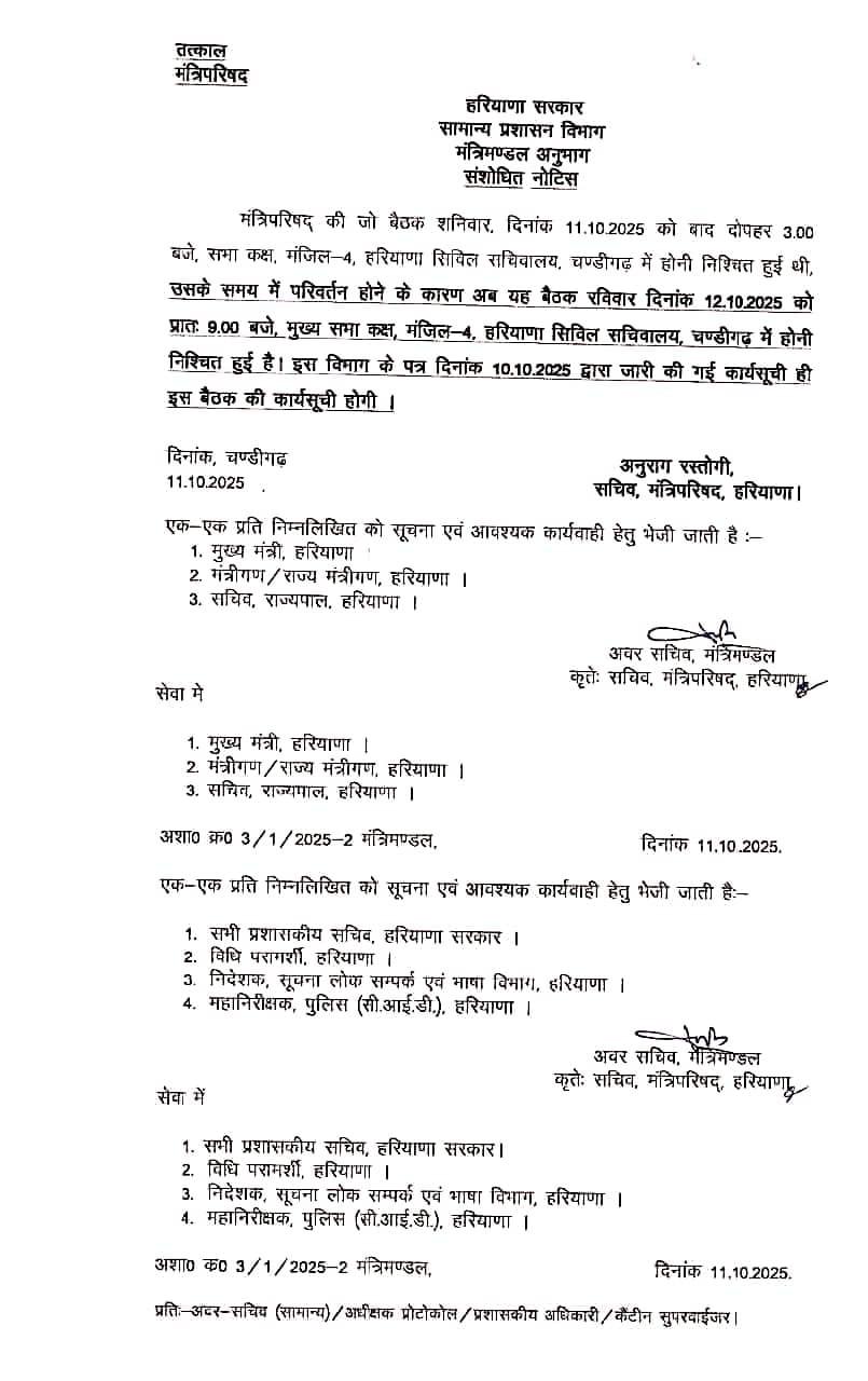Haryana Cabinet Meeting: हरियाणा कैबिनेट की अहम बैठक थोड़ी देर में, जानिए अपडेट
