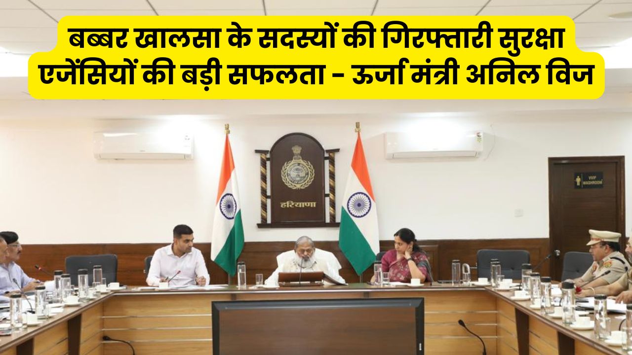 Haryana News: बब्बर खालसा के सदस्यों की गिरफ्तारी सुरक्षा एजेंसियों की बड़ी सफलता – ऊर्जा मंत्री अनिल विज
