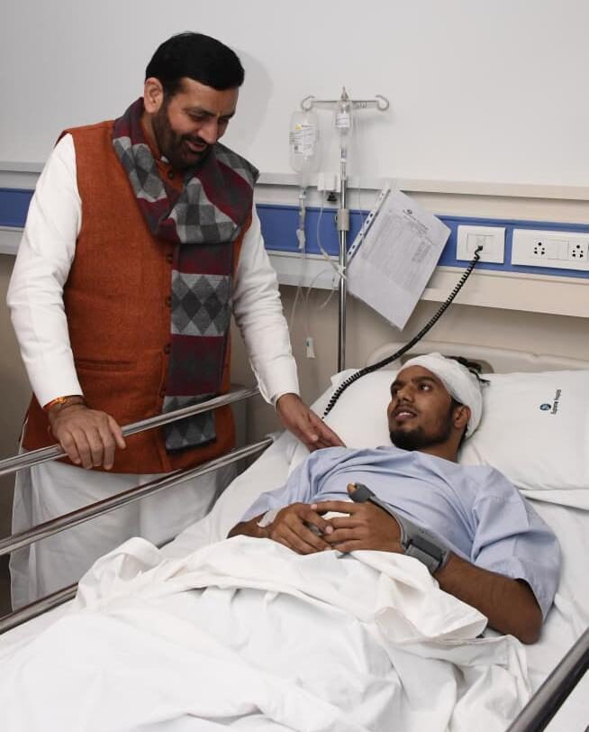 नई दिल्ली 12 फरवरी – गत दिनों हुए सूरजकुंड झूला हादसे के बाद वीरवार 12 फरवरी को मेला परिसर में पहुंचे मुख्यमंत्री श्री नायब सिंह सैनी ने सुप्रीम अस्पताल में भर्ती तीन घायलों से मुलाकात की। मुख्यमंत्री ने उनके स्वास्थ्य की जानकारी ली और जल्द स्वस्थ होने की कामना की। उन्होंने पीड़ितों को आश्वस्त किया कि सरकार उनके साथ खड़ी है। उन्होंने कहा कि हादसा दुर्भाग्यपूर्ण था और सरकार इसके प्रति बेहद गंभीर है। उन्होंने घायलों को आश्वस्त किया कि उनके इलाज का पूरा खर्च हरियाणा सरकार वहन करेगी।