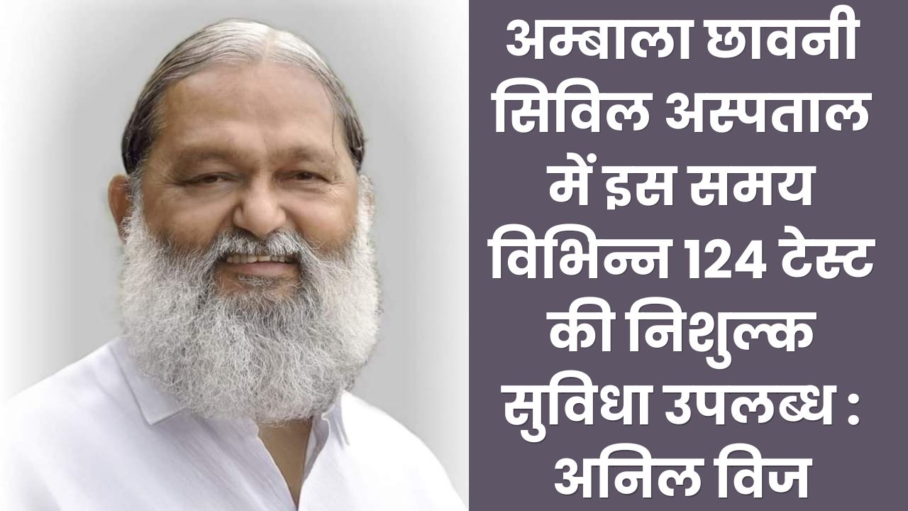 Haryana News: अम्बाला छावनी सिविल अस्पताल में इस समय विभिन्न 124 टेस्ट की निशुल्क सुविधा उपलब्ध : अनिल विज