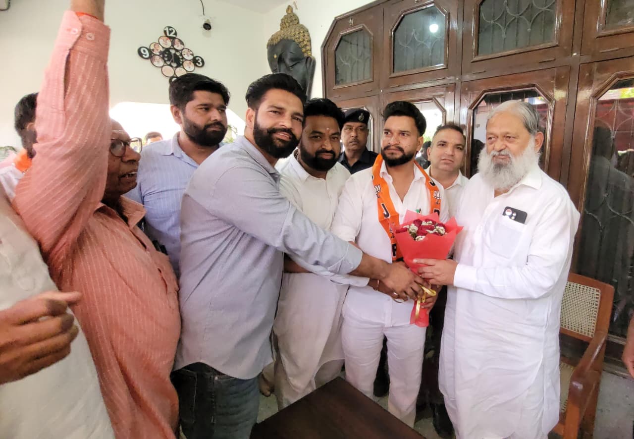 Haryana news: चंडीगढ़, 30 अप्रैल – हरियाणा के ऊर्जा, परिवहन एवं श्रम मंत्री अनिल विज से आज उनके आवास पर भारतीय जनता पार्टी अम्बाला छावनी ग्रामीण मंडल युवा मोर्चा के नवनियुक्त अध्यक्ष हिमांशु सिंह ने सैकड़ों युवा कार्यकर्ताओं के साथ आर्शीवाद लिया।