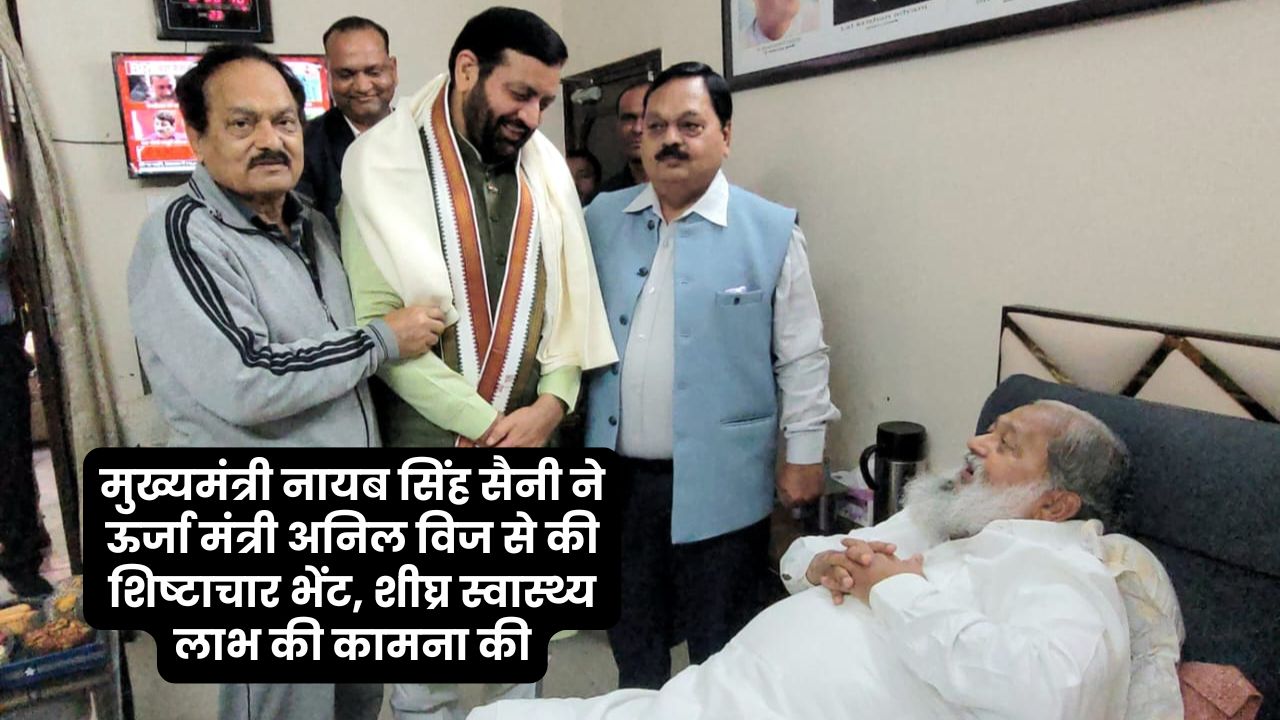 Haryana News: मुख्यमंत्री नायब सिंह सैनी ने ऊर्जा मंत्री अनिल विज से की शिष्टाचार भेंट, शीघ्र स्वास्थ्य लाभ की कामना की
