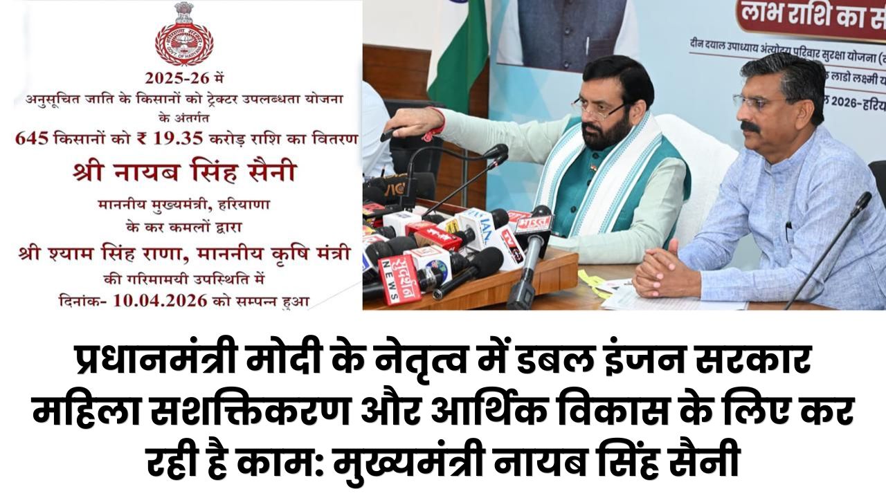 मुख्यमंत्री श्री नायब सिंह सैनी ने हरियाणा निवास में प्रेस वार्ता को संबोधित करते हुए कहा कि प्रधानमंत्री श्री नरेंद्र मोदी के संकल्प के अनुरूप डबल इंजन की सरकार महिला सशक्तिकरण और उनके आर्थिक विकास के लिए लगातार काम कर रही है। इस दौरान सामाजिक न्याय एवं अधिकारिता मंत्री श्री कृष्ण कुमार बेदी भी उपस्थित थे।