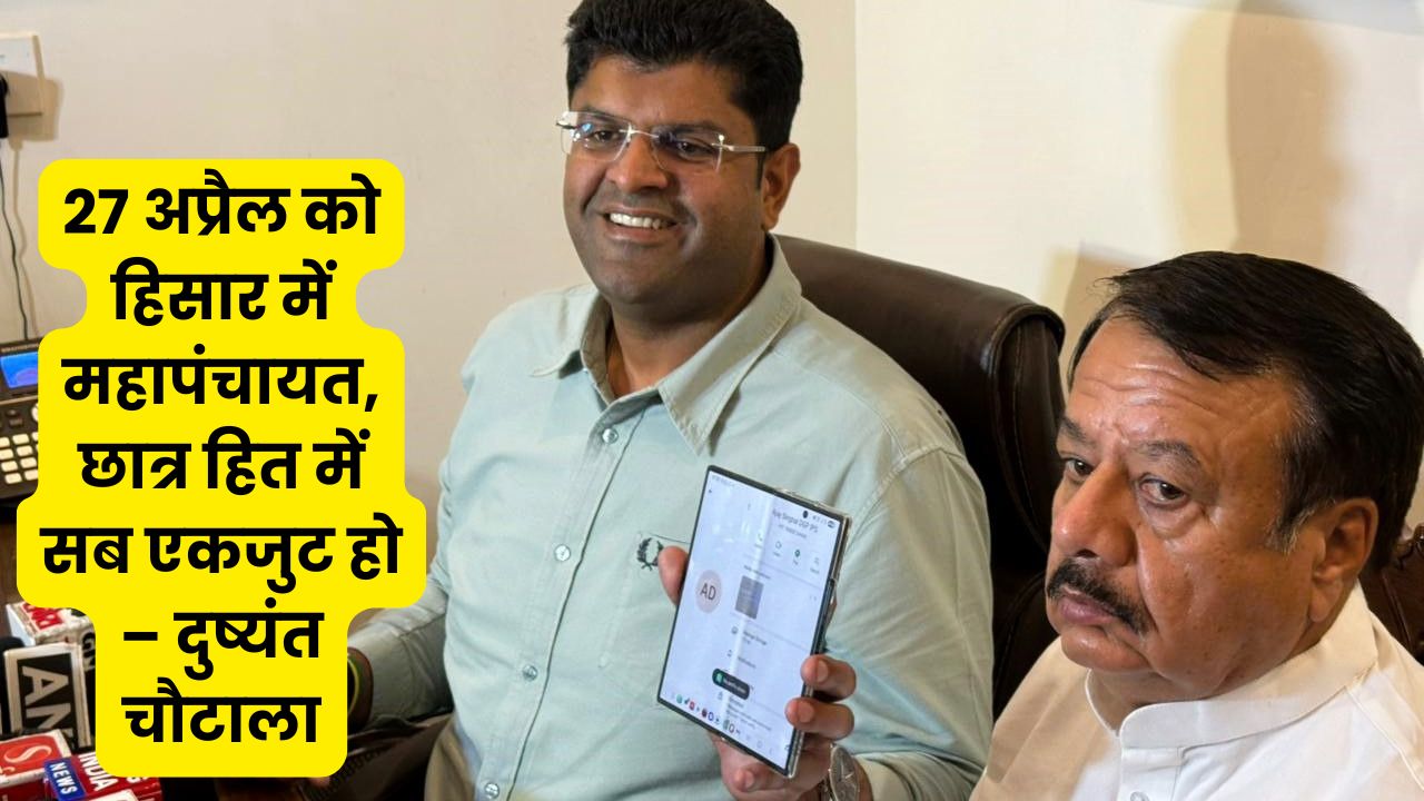दुष्यंत चौटाला ने कहा कि जेजेपी छात्रों के हित में लड़ाई लड़ रही है। उन्होंने कहा कि आज शिक्षण संस्थानों को भाजपा तथा उससे जुड़ी विचारधारा के संगठनों आरएसएस आदि का अड्डा बनाया जा रहा है और बाकी अन्य संगठन के कार्यक्रमों को अनुमति नहीं दी जा रही है। दुष्यंत ने कहा कि आज शिक्षण संस्थानों के हालात बेहद चिंताजनक है, कहीं बहनें सुसाइड कर रही है, अनेक शिक्षण संस्थानों में भ्रष्टाचार के मामले सामने आ रहे है और सरकार चुनिंदा लोगों का बचाव कर रही है। दुष्यंत चौटाला ने कहा कि छात्रों के साथ हो रही प्रताड़ना और पुलिस प्रशासन के गिरते स्तर के खिलाफ आज हमें एकजुट होने की जरूरत है और 27 अप्रैल को हिसार महापंचायत में आगामी रणनीति तैयार की जाएगी।