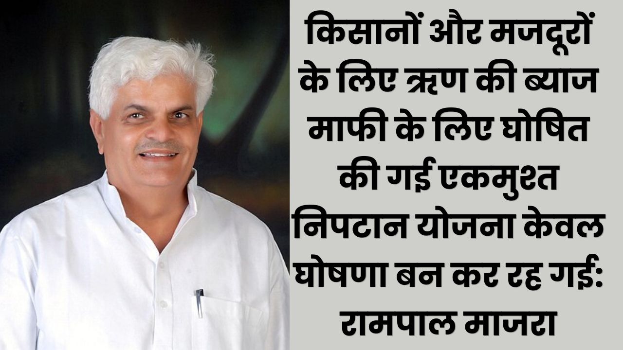 Haryana News: किसानों और मजदूरों के लिए ऋण की ब्याज माफी के लिए घोषित की गई एकमुश्त निपटान योजना केवल घोषणा बन कर रह गई: रामपाल माजरा