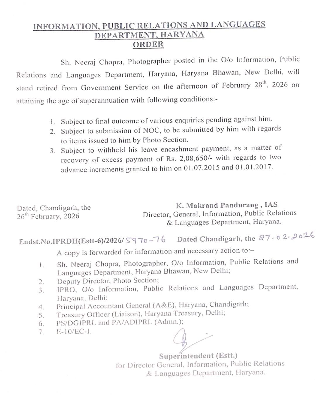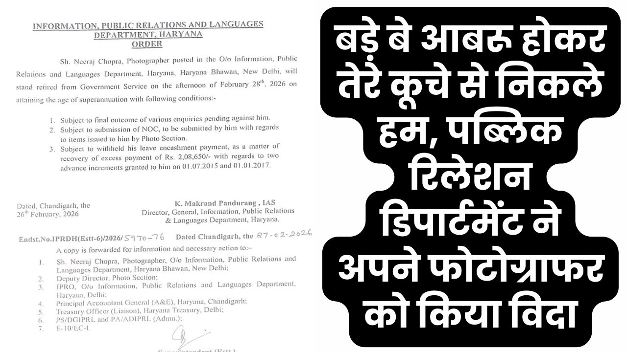 Haryana News: बड़े बे आबरू होकर तेरे कूचे से निकले हम, पब्लिक रिलेशन डिपार्टमेंट ने अपने फोटोग्राफर को किया विदा