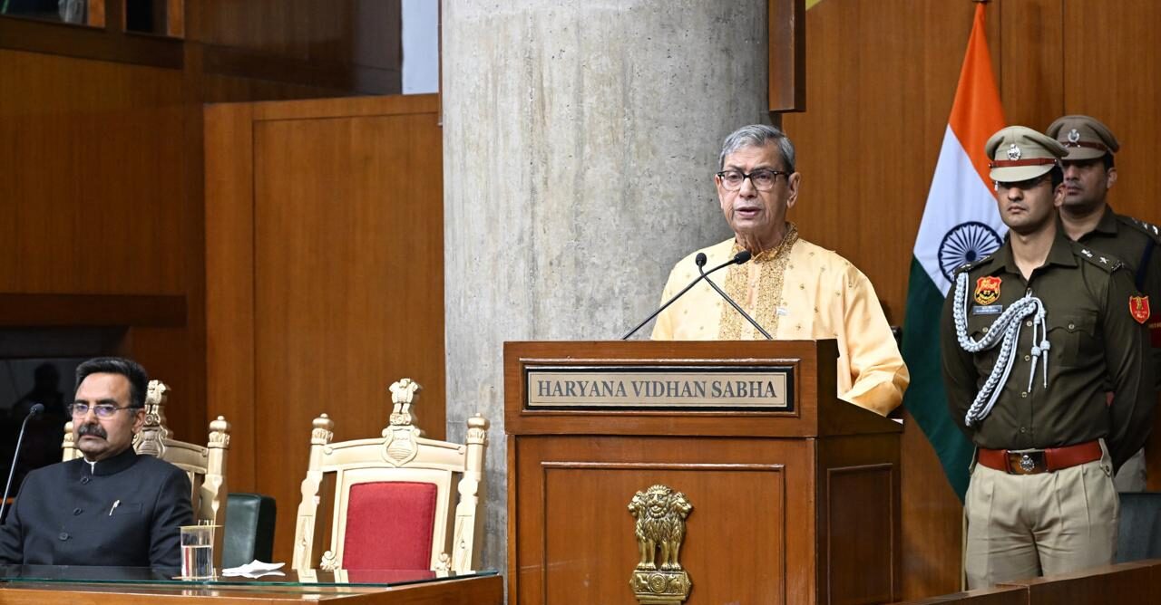 प्रोफ़ेसर असीम कुमार घोष शुक्रवार को हरियाणा विधानसभा के बजट सत्र के शुभारंभ अवसर पर अपना अभिभाषण दे रहे थे।