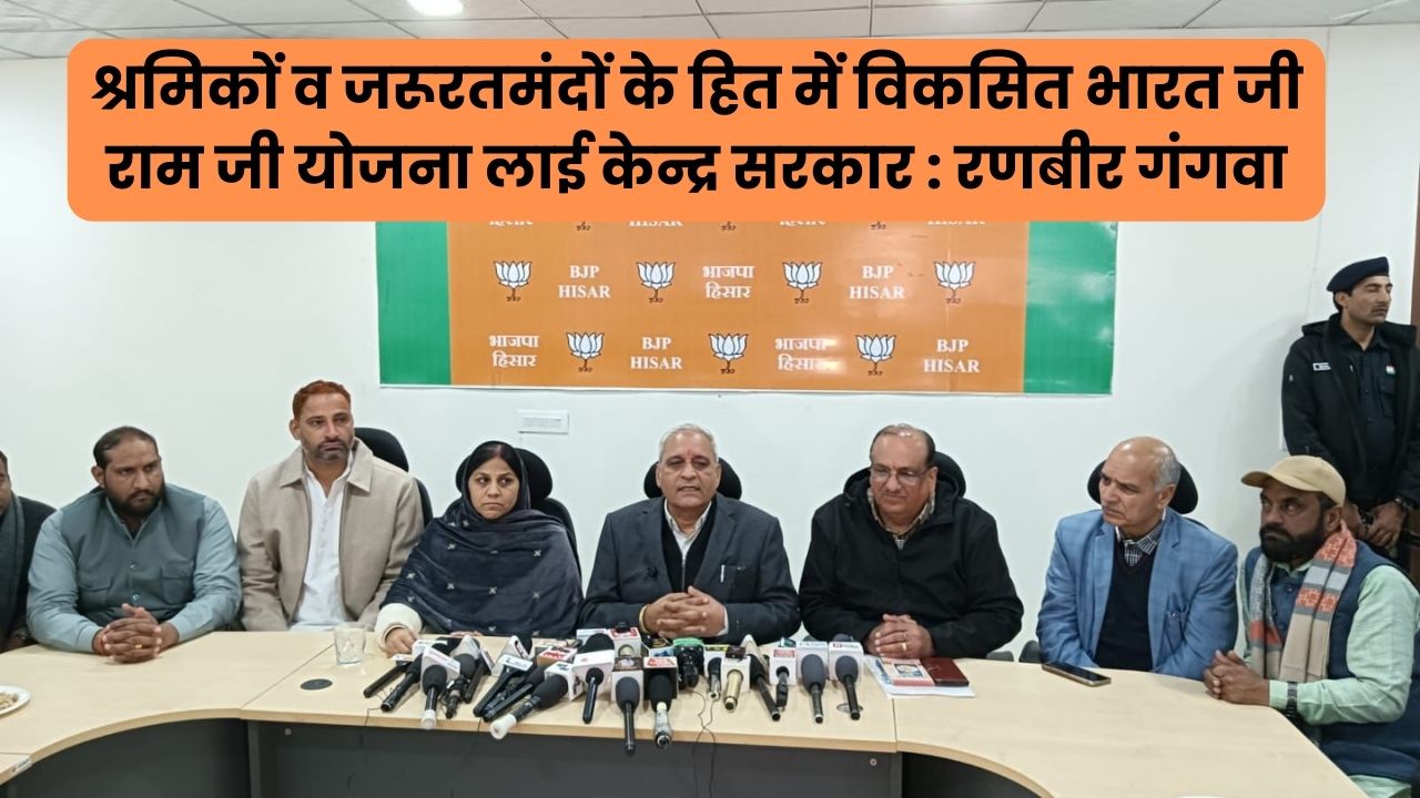 Hisar BJP: हिसार। राज्य के लोक निर्माण एवं जन स्वास्थ्य मंत्री रणबीर गंगवा ने कहा है केन्द्र सरकार श्रमिकों व जरूरतमंदों के हित में विकसित भारत जी राम जी योजना लाई है। न केवल काम के दिन बढ़ाए गए हैं बल्कि परिवर्तन करते हुए इसे जरूरतमदों के हित वाली बनाया गया है लेकिन कांग्रेस पार्टी त्थ्यों रहित बात करके दुष्प्रचार कर रही है, जो गलत है।