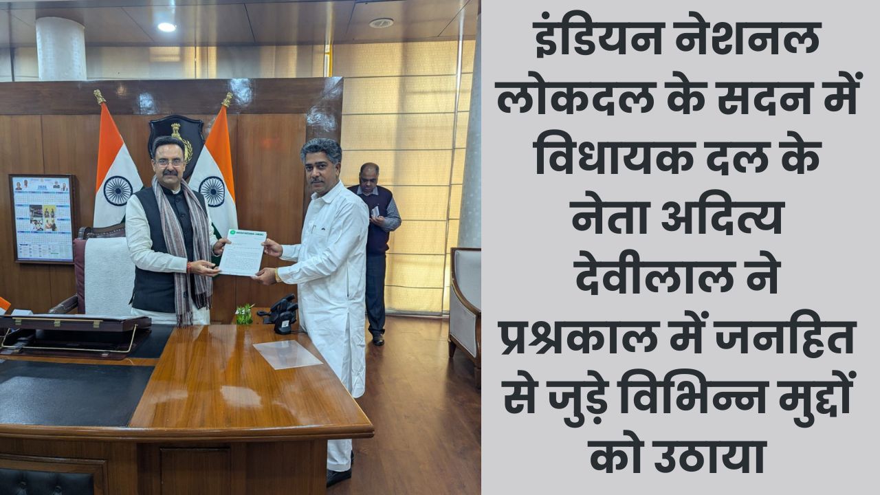 INLD News: इंडियन नेशनल लोकदल के सदन में विधायक दल के नेता अदित्य देवीलाल ने प्रश्रकाल में जनहित से जुड़े विभिन्न मुद्दों को उठाया