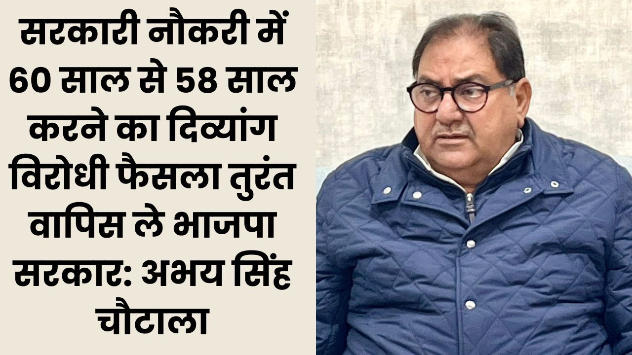 INLD News: सरकारी नौकरी में 60 साल से 58 साल करने का दिव्यांग विरोधी फैसला तुरंत वापिस ले भाजपा सरकार: अभय सिंह चौटाला