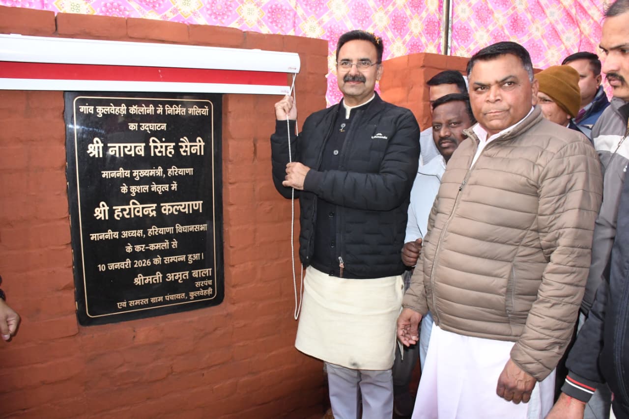 करनाल, 10 जनवरी। हरियाणा विधानसभा अध्यक्ष हरविन्द्र कल्याण ने आज गांव कुलवेहड़ी को बड़ी सौगात दी। 96 लाख रूपये के विकास कार्यों का उद्घाटन व शिलान्यास किया। उन्होंने बताया कि करीब 44 लाख रुपये के नए कार्यों को सरकार से मंजूरी मिल चुकी है। श्री कल्याण ने लोगों से स्वच्छता और बच्चों की पढ़ाई पर विशेष ध्यान देने और नौजवानों से नशे से दूर रहने की अपील की।