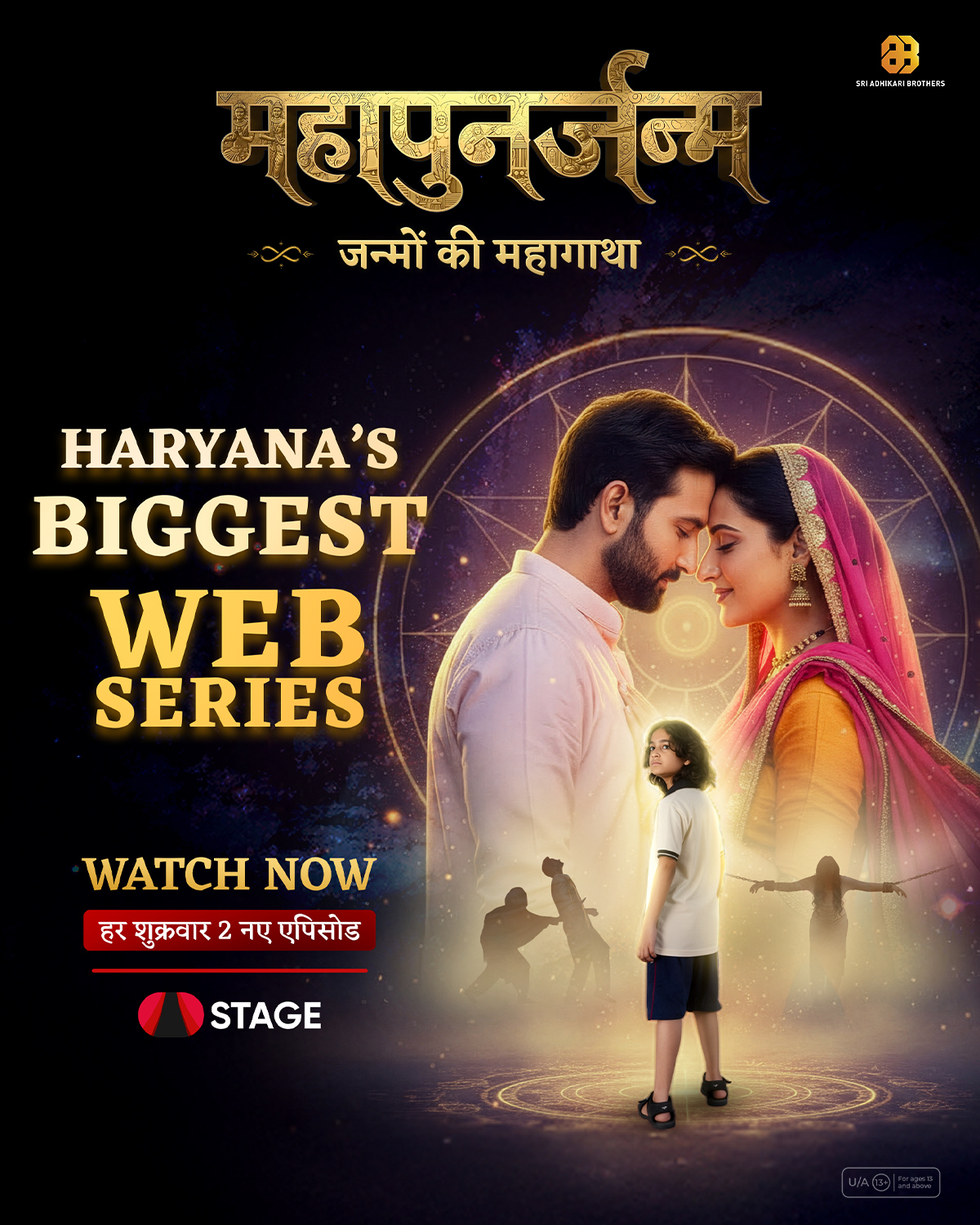 हरियाणा की फिल्म इंडस्ट्री के लिए यह सप्ताह काफी रोचक और इतिहास रचने वाला रहा है। जैसा कि सभी को पता है कि हरियाणा की अब तक की सबसे बड़ी वेब सीरीज़ ‘महा-पुनर्जन्म …जन्मों की महागाथा’ STAGE App पर 31 अक्टूबर को रिलीज हो गई थी। इस वेब सीरीज के हर शुक्रवार दो एपिसोड रिलीज होते हैं। पिछले शुक्रवार को जो पहले दो एपिसोड रिलीज हुए थे उन्होंने पहले ही सप्ताह में सारे रिकॉर्ड तोड़ दिए। ये पहले दोनों एपिसोड एक सप्ताह के अंदर सबसे ज्यादा देखे जाने वाले कंटेंट बन गए हैं। जैसा कि विदित है कुल 26 एपिसोड वाली यह सीरीज़ लगातार 13 सप्ताह तक दर्शकों का मनोरंजन करेगी। इस सीरीज़ को श्री अधिकारी ब्रदर्स ने प्रोड्यूस किया है, जो भारतीय टेलीविज़न और ओटीटी जगत के बड़े और अनुभवी नामों में से एक है। इसके क्रिएटर्स कैलाश अधिकारी और रवि अधिकारी हैं, जो अब हरियाणवी कंटेंट को एक नए सिनेमैटिक स्तर पर लेकर जा रहे हैं। सीरीज़ की शूटिंग हरियाणा के भिवानी जिले में हुई है, जहाँ की मिट्टी, संस्कृति और आधुनिकता का मेल इस कहानी को जमीनी सच्चाई देता है। इस वेब सीरीज में अजयवीर का मुख्य किरदार हरियाणा के रोहतक में जन्मे और मुंबई में काम करने वाले प्रदीप दुहन ने निभाया है। छोटे बच्चे केशव का रोल ने अवि चौहान ने निभाया है मोहिनी का किरदार पुष्पांजलि ने किया है।