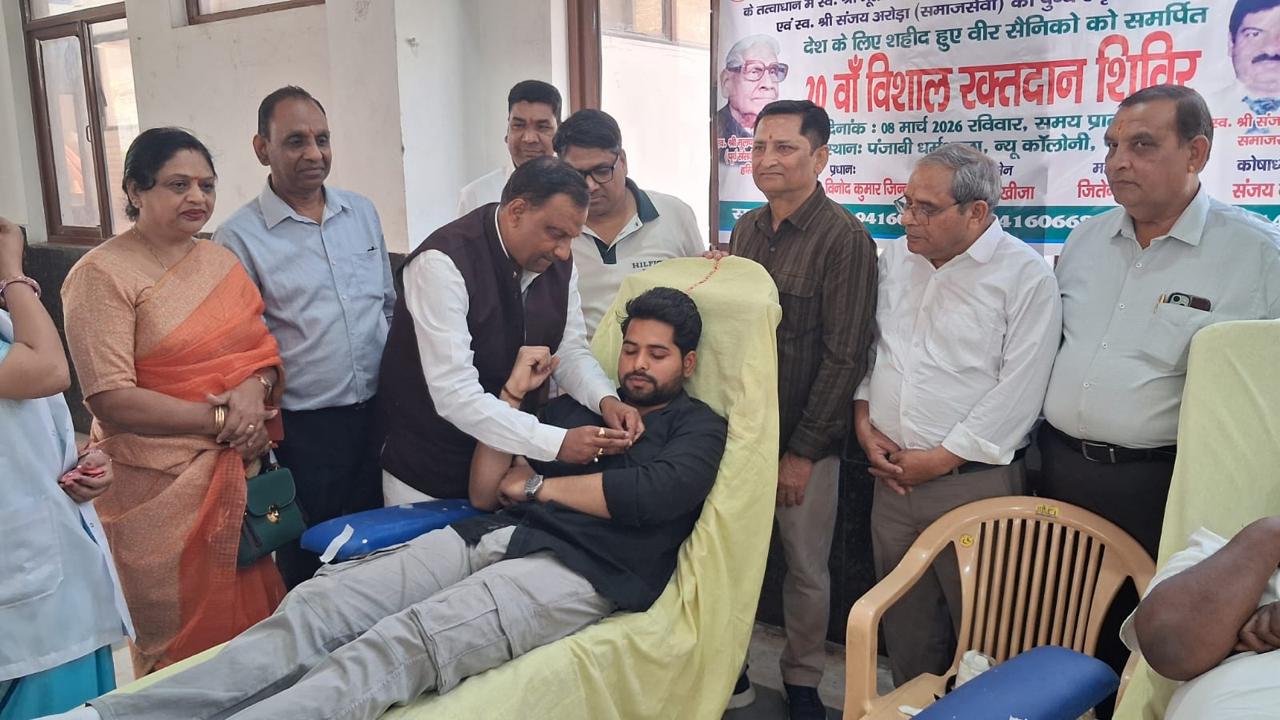 आज रविवार 8 मार्च 2026 को जिला पलवल केमिस्ट एसोसिएशन पलवल द्वारा स्वर्गीय श्री मूलचंद मंगला, पूर्व संसदीय सचिव हरियाणा सरकार एवं स्वर्गीय श्री संजय अरोड़ा समाजसेवी की पुण्य स्मृति तथा शहीदों की याद में पंजाबी धर्मशाला पलवल में 20वां विशाल स्वैच्छिक रक्तदान शिविर आयोजित किया गया।
