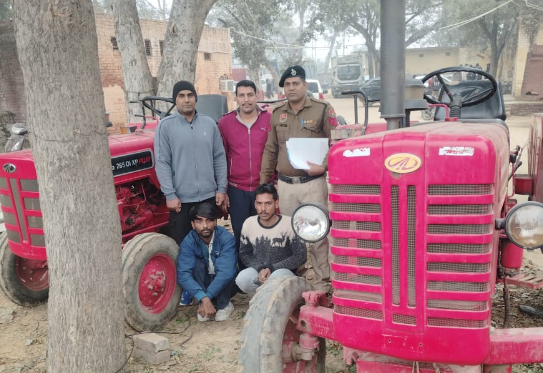मामले की जानकारी देते हुए एवीटी हथीन प्रभारी P/SI दीपक गुलिया ने बताया कि को एसआई मोहम्मद यासिर के नेतृत्व में एवीटी टीम हथीन थाना क्षेत्र अंतर्गत हथीन रेस्ट हाउस चौक पर गश्त पर थी। इसी दौरान मुखबिर से सूचना मिली कि नूंह के उदका का रहने वाला नंद किशोर उर्फ नंदू और सोहना के सांप की नंगली का रहने वाला नीरज चोरी के ट्रैक्टर लेकर बेचने के लिए हथीन होते हुए नूंह की तरफ जाएंगे। सूचना के आधार पर पुलिस ने स्वामिका रोड पर नाकेबंदी की। करीब 20 मिनट बाद दो ट्रैक्टर मण्डकोला की तरफ से आते दिखे। टीम ने ट्रैक्टरों को रोक लिया और आरोपियों को काबू कर लिया। दोनों ट्रैक्टरों से नंबर प्लेट नहीं मिली और आरोपी कोई कागजात पेश ना कर सके। पूछताछ में आरोपी नंद किशोर उर्फ नंदू ने बताया कि उसने ट्रैक्टर को गुरुग्राम से करीब एक महीना पहले चोरी किया था। साइबर सेल से पता करने पर यह ट्रैक्टर गुरुग्राम के थाना शिवाजी नगर गुरुग्राम में बीती 27 नवंबर को चोरी होना पाया गया। दूसरे आरोपी नीरज ने बताया कि उसने ट्रैक्टर गुरुग्राम से छह महीने पहले चोरी किया था। जो थाना सदर गुरुग्राम में 12 अगस्त 2025 को चोरी हुआ था।