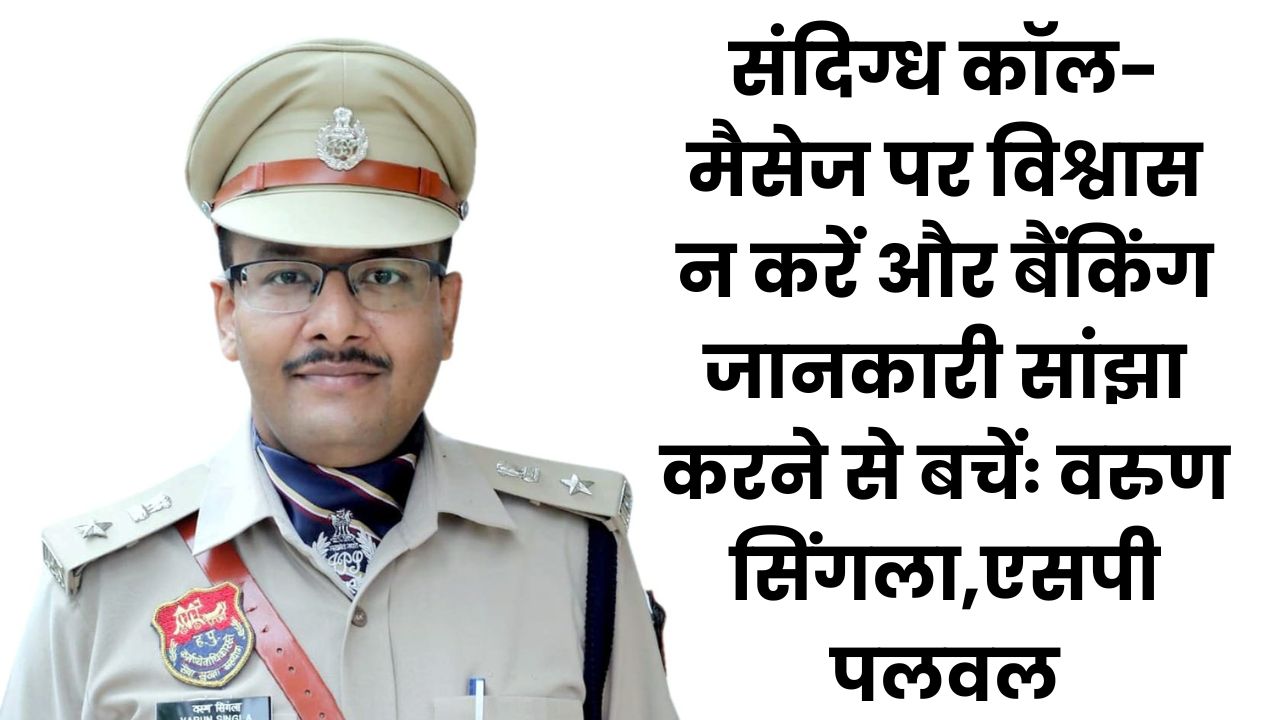 Palwal News: संदिग्ध कॉल-मैसेज पर विश्वास न करें और बैंकिंग जानकारी सांझा करने से बचेंः वरुण सिंगला,एसपी पलवल