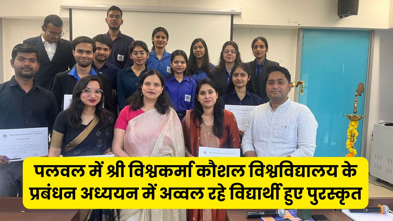 Palwal News: पलवल में श्री विश्वकर्मा कौशल विश्वविद्यालय के प्रबंधन अध्ययन में अव्वल रहे विद्यार्थी हुए पुरस्कृत