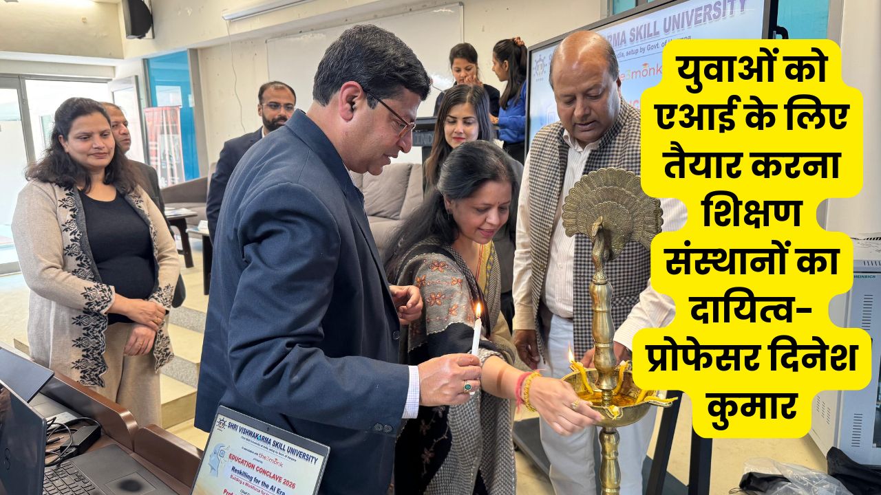 पलवल। श्री विश्वकर्मा कौशल विश्वविद्यालय और थ्री मॉन्क कंपनी के संयुक्त तत्वावधान में शुक्रवार को रिस्किलिंग फॉर द एआई इरा विषय पर एजुकेशन कॉन्क्लेव का आयोजन किया गया। कुलगुरु प्रोफेसर दिनेश कुमार ने दीप प्रज्ज्वलन के साथ कार्यक्रम का उद्घाटन किया। इस अवसर पर उन्होंने कहा कि एआई भविष्य की आवश्यकता है। युवाओं को इसके लिए तैयार करना शैक्षिणक संस्थाओं का दायित्व है। श्री विश्वकर्मा कौशल विश्वविद्यालय इस दिशा में गंभीर प्रयास कर रहा है।कुलगुरु प्रोफेसर दिनेश कुमार ने कहा उद्योग के साथ समन्वय स्किल एजुकेशन मॉडल की विशेषता है। यही विशेषता श्री विश्वकर्मा कौशल विश्वविद्यालय को अन्य शिक्षण संस्थानों से अलग करती है।