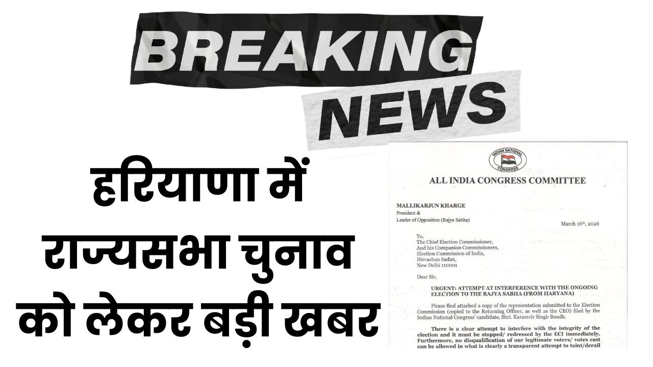 कांग्रेस राष्ट्रीय अध्यक्ष मल्लिकार्जुन खड़गे ने मुख्य चुनाव आयुक्त से हरियाणा राज्यसभा चुनाव मे गड़बड़ी का मुद्दा उठाते हुए हस्तक्षेप की करी मांग।