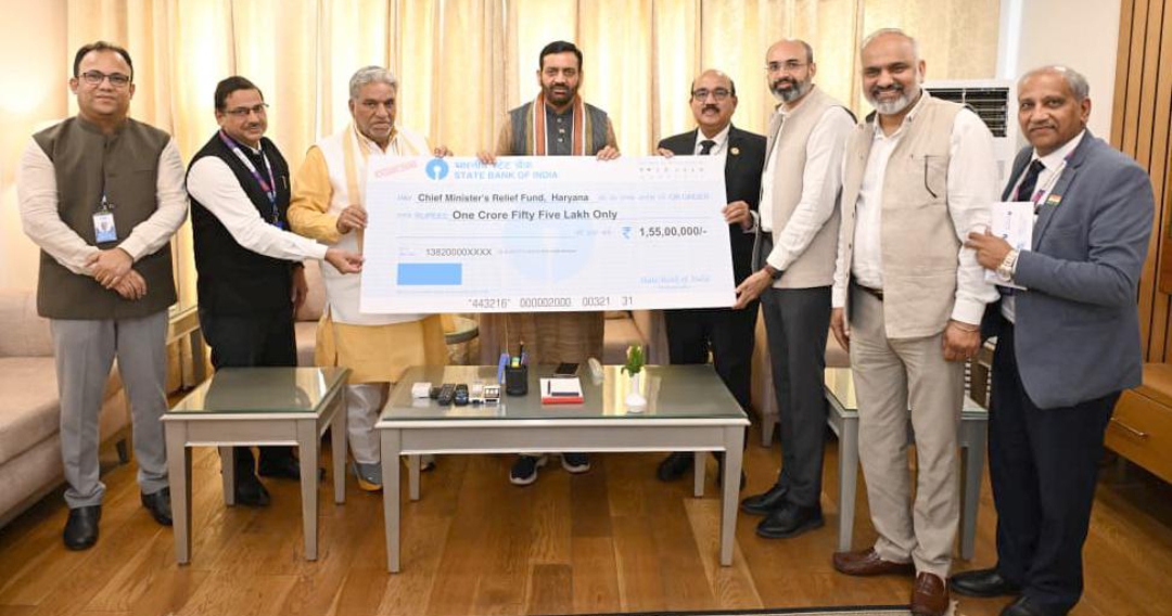 एसबीआई के मुख्य महाप्रबंधक श्री कृष्ण शर्मा, महाप्रबंधक (हरियाणा) श्री नीरज भारती और उप महाप्रबंधक श्री काजल भौमिक द्वारा मुख्यमंत्री को राशि का चेक प्रदान किया गया।