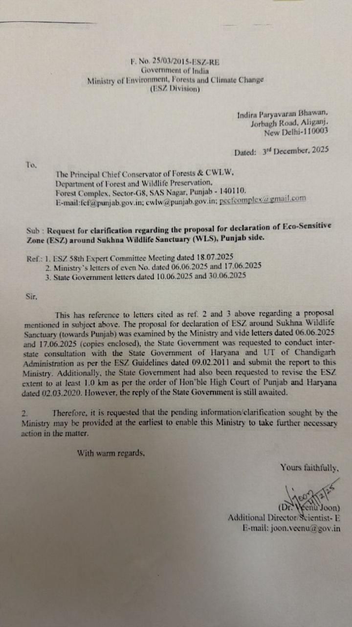 केंद्रीय पर्यावरण, वन एवं जलवायु परिवर्तन मंत्रालय (MoEFCC) ने 3 दिसंबर 2025 को पंजाब सरकार को कड़ा निर्देश दिया है कि अभयारण्य के चारों ओर कम से कम 1 किलोमीटर का इको-सेंसिटिव ज़ोन (ESZ) अधिसूचित किया जाए। केंद्र ने स्पष्ट किया है कि यह कदम हाई कोर्ट के 2 मार्च 2020 के आदेश के अनुरूप है। इस फैसले से उन हजारों मकानों पर सीधा खतरा पैदा हो गया है जो अब तक 100 मीटर के पुराने प्रस्ताव की आड़ में सुरक्षित महसूस कर रहे थे।