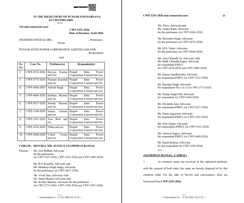 * बिजली निगम (PSPCL) की मजबूरी: निगम ने स्पष्ट किया कि हाई कोर्ट के पुराने अंतरिम आदेशों के कारण वे इस क्षेत्र में बिजली, पानी या सीवरेज जैसी सुविधाएं देने में असमर्थ हैं और इस पर अब हाल ही के 18मार्च 2026 के सिंगल बेंच के आदेश के कारण और करारा झटका लग गया है हालांकि, निगम ने हाईकोर्ट से कांसल निवासियों के लिए ‘अस्थायी कनेक्शन’ की अनुमति मांगी थी जो मैंने हाईकोर्ट ख़ारिज कर दी है।